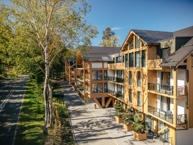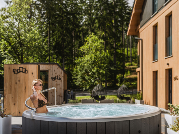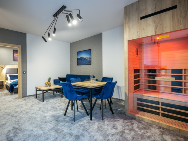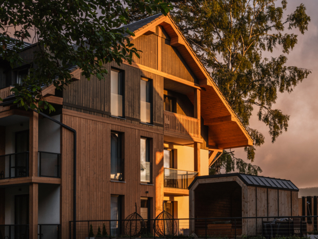 Apartments, finished to a high standard with an area ranging from 24.40 to 41.40 m², have been designed with attention to detail, and the custom-made furniture line gives them a unique character. Most units feature their own sauna, and the price includes full furnishings and high-quality finishes. There is also the possibility to purchase a parking space – both underground and outdoor. In the planned second phase of the investment, an ecological pool and SPA & Wellness area are planned, which will further enhance the standard and comfort of relaxation.